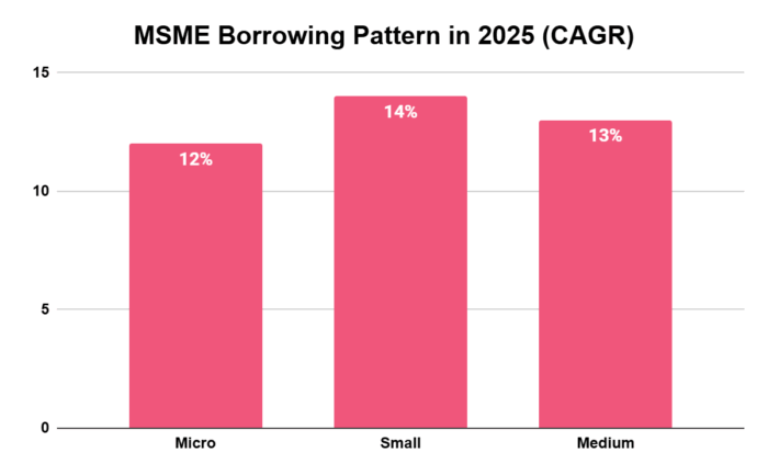 - Micro enterprises recorded a 12% CAGR, reaching an outstanding portfolio of ₹8.3 lakh crore in March 2025.