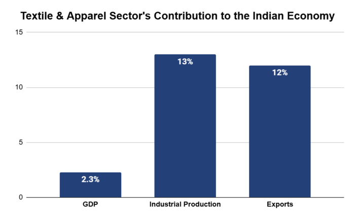 Small industries in India have always had strong roots in traditional sectors. Textiles, apparel, agro-processing, and food products remain the backbone of production in many regions. For instance, the textile and apparel sector accounts for 2.3% of India’s GDP, 13% of total industrial production, and 12% of the country’s exports. In 2023–24, textile exports were valued at USD 34.4 billion, with apparel forming the largest share at 42%, followed by raw and semi-finished materials at 34% and finished non-apparel goods at 30%. Beyond trade, the sector is also a major source of employment, directly providing jobs to more than 45 million people, making it the second-largest employer after agriculture2.